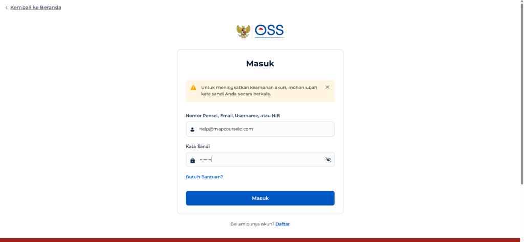 1. Masuk ke Sistem OSS